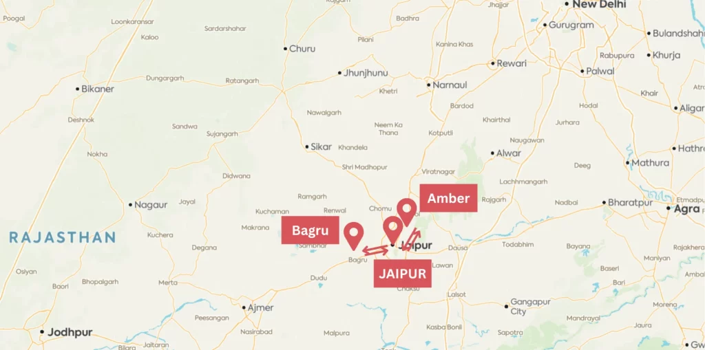 You’ll not only explore hidden gems but also roll up your sleeves to create your own beautiful pieces—whether it’s block printing your own fabric, experimenting with natural dyeing or diving into the vibrant world of traditional leheriya dyeing. It’s a truly immersive experience.